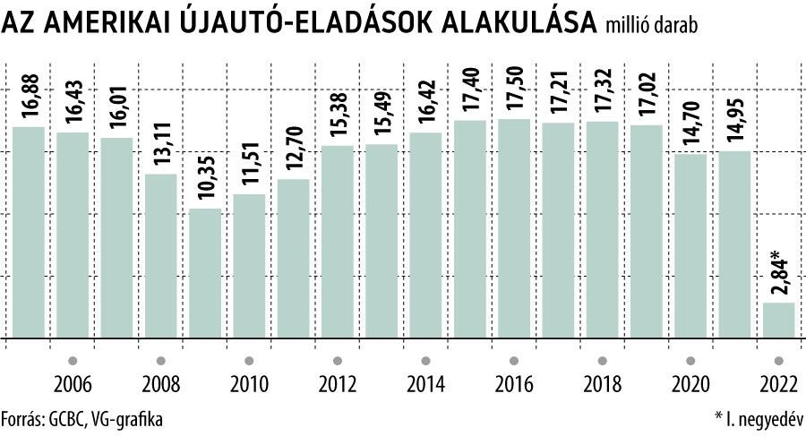 Az infláció és a kereslet rekord szintre hajtotta az átlagárat, ami 44 129 dollár volt a negyedévben a J.D. Power szerint, míg diszkontra számítani hasztalan manapság. A használtautó-piacon hatalmas a nyüzsgés: az átlagár éves alapon 81 százalékkal 9 274 dollárra ugrott, a havi átlagos törlesztőrészlet pedig 658 dolláron történelmi rekordra ért. A nyomás az autópiacon a második félévtől enyhülhet, a csipszállítások helyreállásától függően.