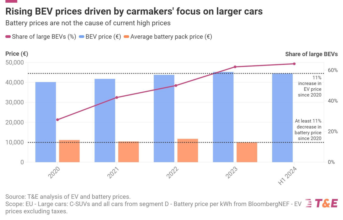 Az új autók értékesítési átlagárának növekedéséhez számos tényező hozzájárult az utóbbi években: a koronavírus-járvány okozta lezárások és gyárleállások, a beszállítói láncok megszakadása, a gyártási költségek emelkedése és a szigorodó szabályozói előírások egyaránt felfelé hajtották az árakat. A T&E ugyanakkor felhívja a figyelmet arra, hogy az elektromos autók drágulásában kulcsszerepet játszott az is, hogy