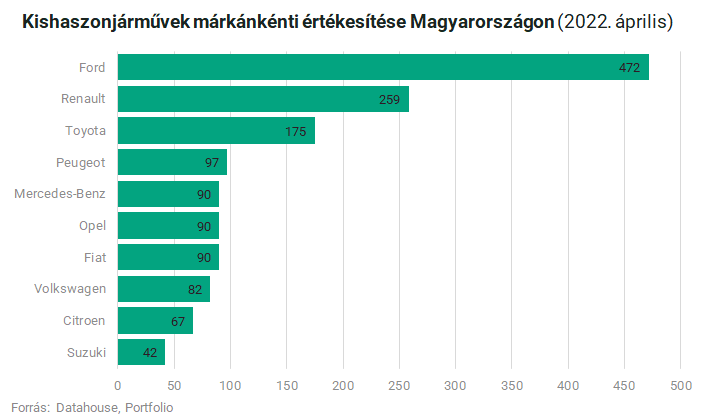 Az egyes márkák közül a legtöbbet, 472 darabot, a Fordból adták el a magyar autópiacon, a márka piaci részesedése közel 30 százalék volt. A lista második helyén a Renault következett 259 eladott járművel, míg a harmadik helyet a Toyota szerezte meg 149 darabos értékesítéssel áprilisban.