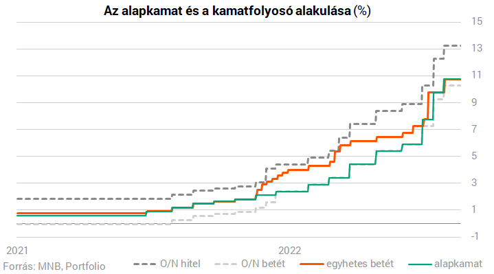 Csütörtökön a múlt hetivel megegyező 10,75%-os kamat mellett hirdette meg egyhetes betéti tenderét az MNB, vagyis nem változik az irányadó kamat, továbbra is egyezik az alapkamattal. Legutóbb július végén döntött a kamatszintek emelkedéséről az MNB.