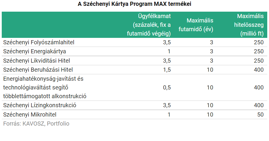 A héten már elérhetők lesznek az új MAX hitelek a területi kereskedelmi és iparkamarák, a Vállalkozók Országos Szövetsége (VOSZ) és a KAVOSZ Zrt. irodáiban, pár napon belül megkezdődhet a kérelmek befogadása. A Széchenyi Kártya Program MAX célja az, hogy versenyképességet erősítő és növekedést támogató kedvezményes finanszírozást biztosítsunk a hazai mikro-, kis- és középvállalkozások számára.